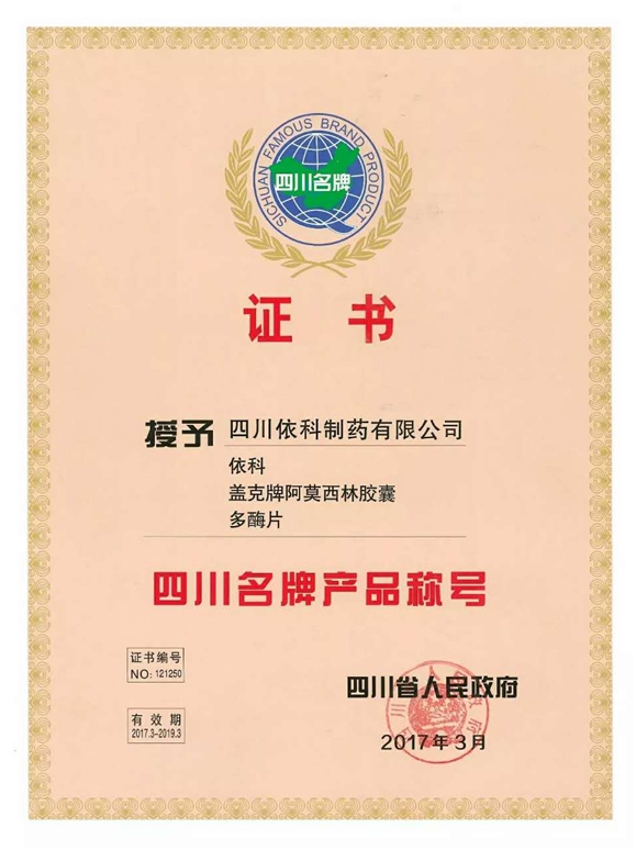 公司高度重视品牌战略,依法注册了“盖克”、“蜀中”、“三星堆”、“阿莫锋”、“益善源”、“蓉通”、“麻花豆传剧媒国产剧在线观看完整”等108件注册商标,1999年“盖克”、2003年“蜀中”、2007年“三星堆”被认定为德阳市知名商标,2001年“盖克”、2004年“蜀中”被认定为四川省著名商标, 2008年“盖克”商标被国家工商行政管理总局认定为“中国驰名商标”。2017年3月,公司盖克牌、麻花豆传剧媒国产剧在线观看完整牌阿莫西林胶囊和多酶片被四川省人民政府授予四川名牌产品称号。2016年,公司实现营业收入66373万元,利税7600万元;2017年,公司实现营业收入75045万元,利税7572万元。公司2017年被命名为德阳市第七批院士专家工作站,2016-2018连续三年被德阳市人民政府确定为重点龙头企业。